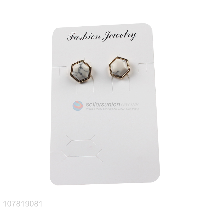 New arrival crackle stone ear studs geometric hexagon stud earrings