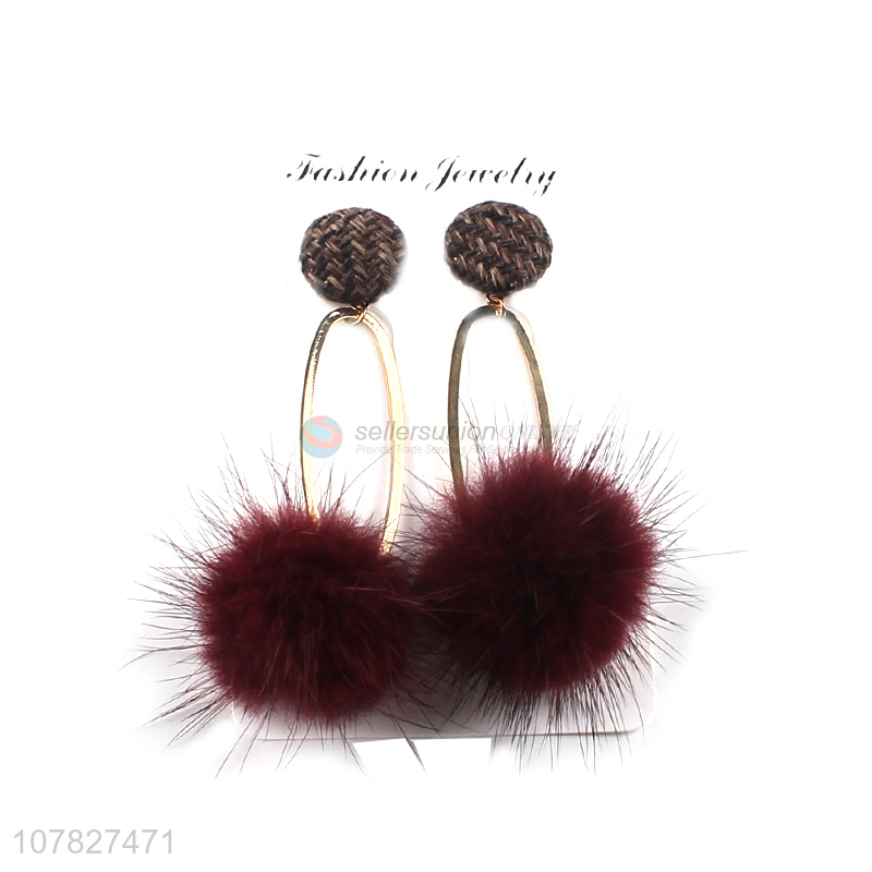 Hot Sale Modern Ladies Earring Fur Ball Dangle Earrings