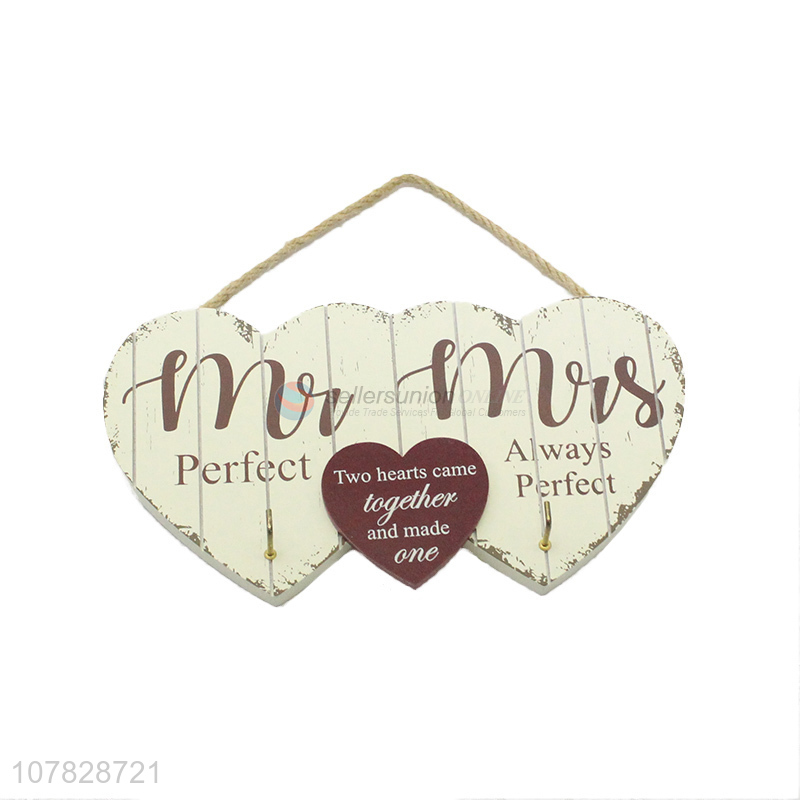 China factory wall hanging double-hearted wooden key holder organizer