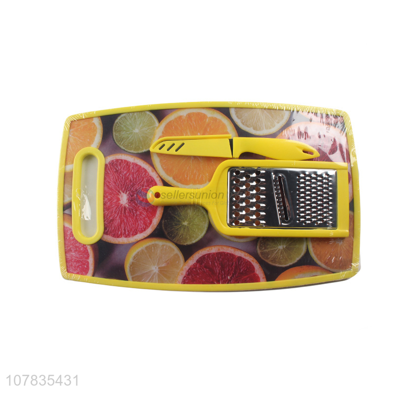 Wholesale food grade plastic cutting board set with fruit knife and grater