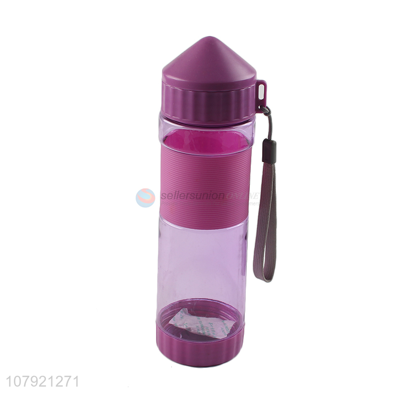 Good quality durable plastic purple water cup tea cup with rope