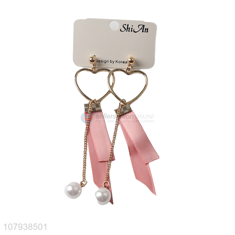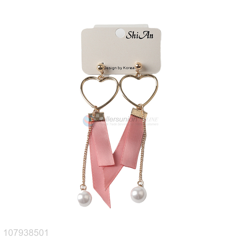 China factory heart shape lady earrings with pearl pendant