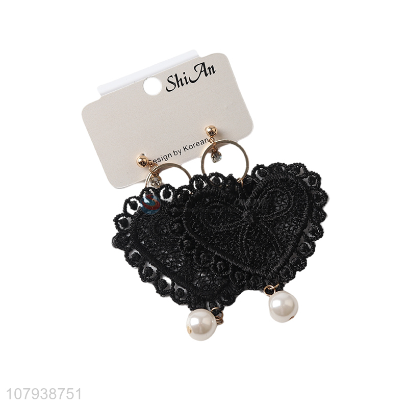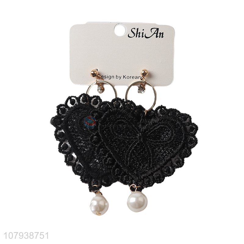 Best price black heart shape women earrings with pearls pendant