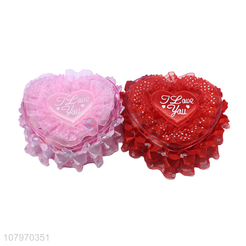 • New style heart shape plastic jewelry box with lace decoration