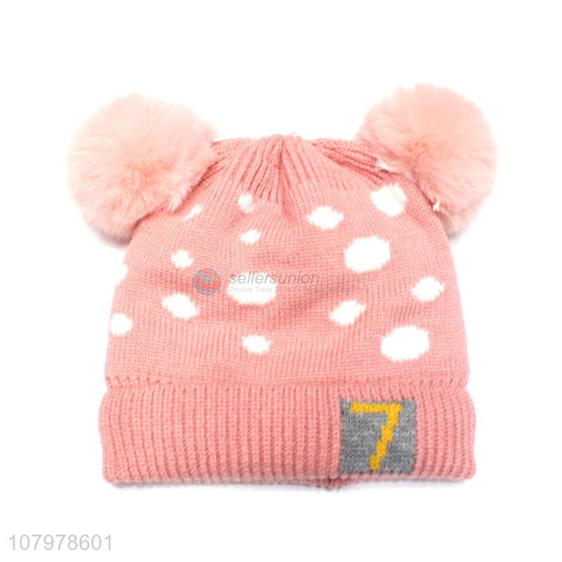 Good quality kids fleece lined thick beanie winter warm knitted hat