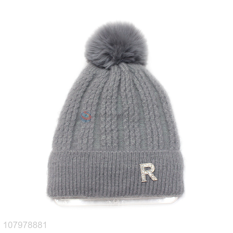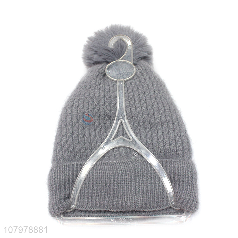 Top product women winter warm pom pom beanie hat with fleece lining