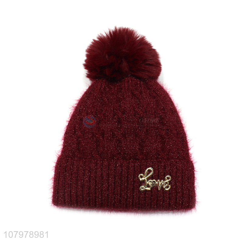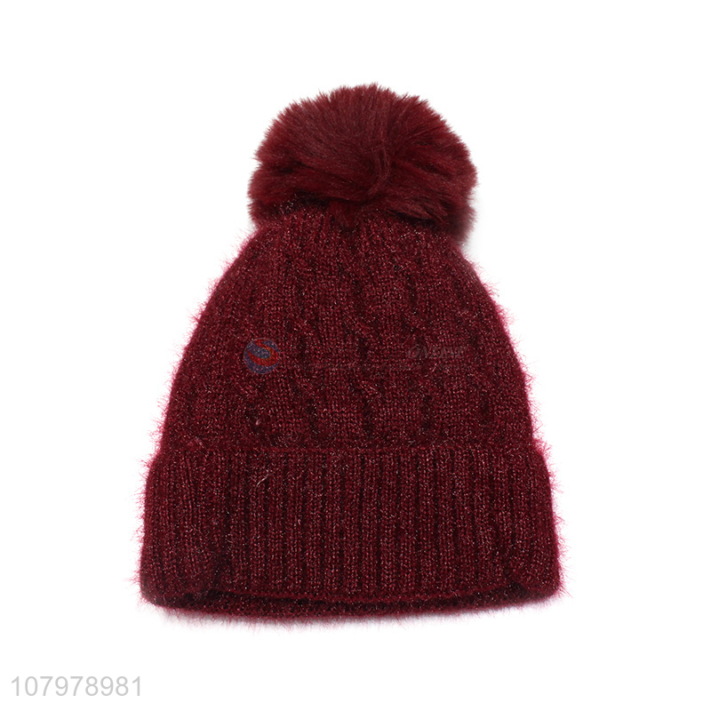 High quality women winter warm fleece lined beanies pom pom knitted hats