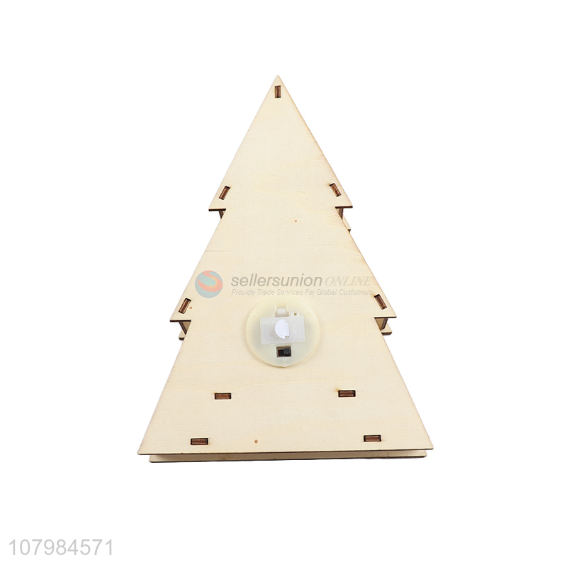 Good selling cute xmas tree shape wooden decoration led light ornaments