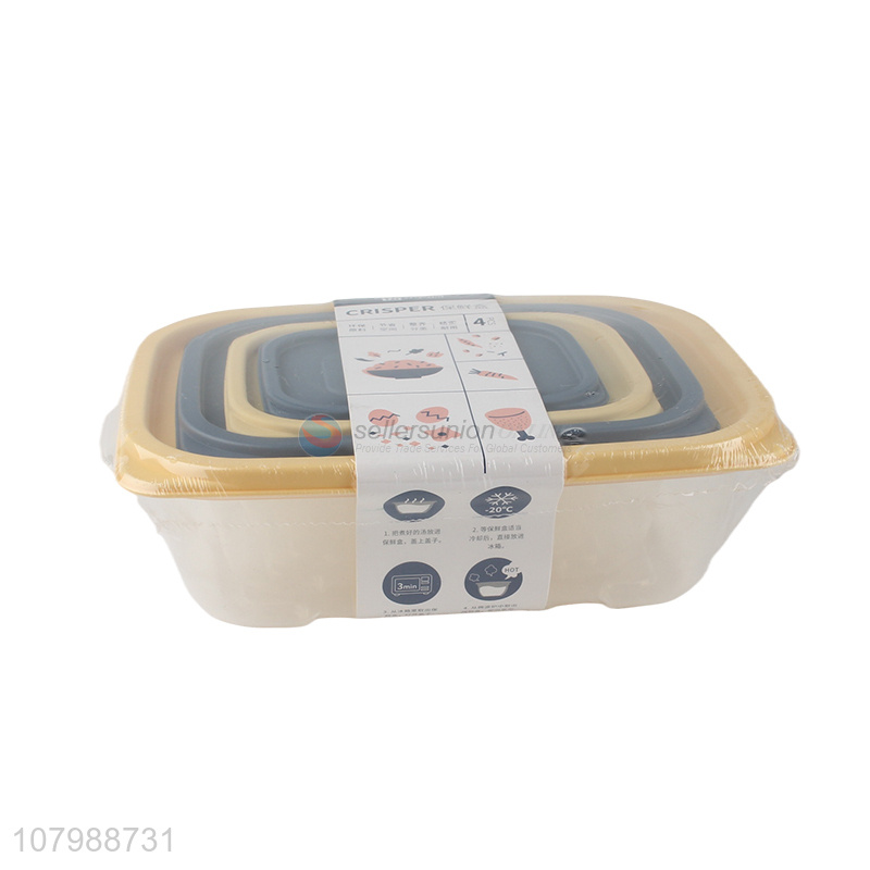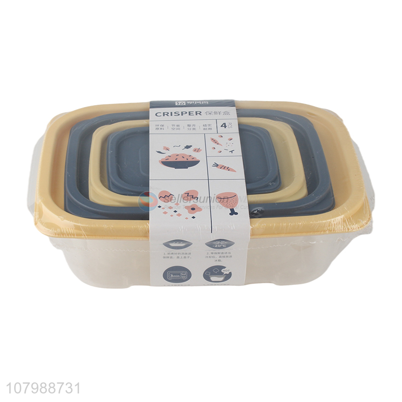 Factory supply 4 pieces rectangular plastic refrigerator food storage box set