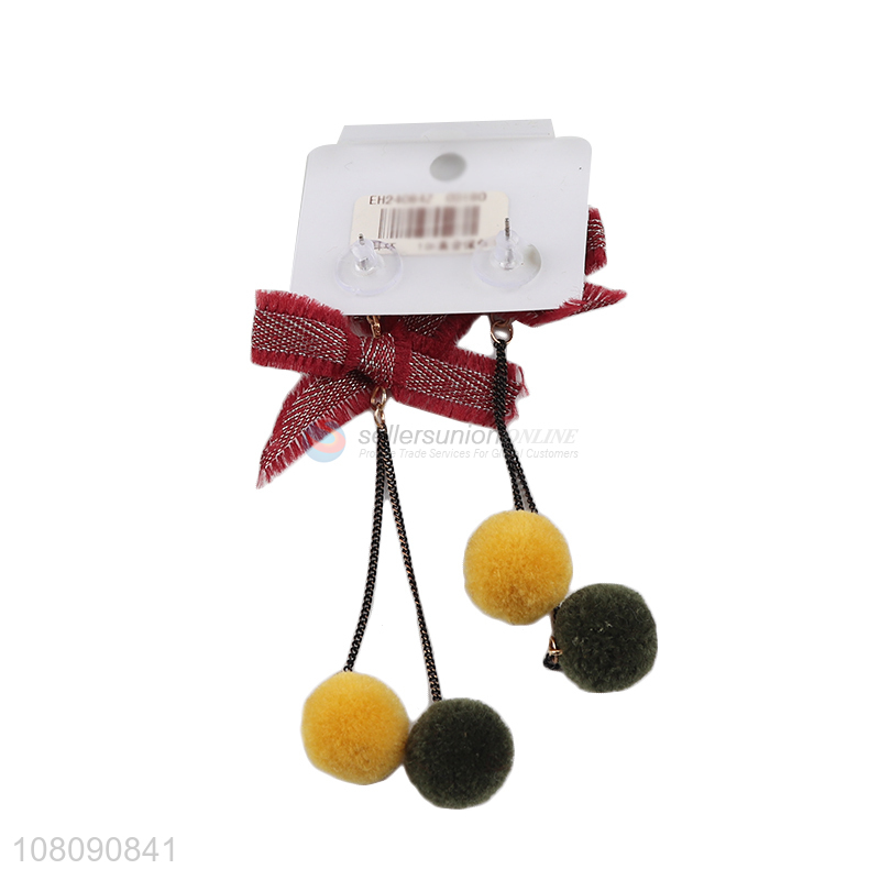 Best Sale Fashion Bowknot Fur Ball Drop Earring Stud Earring