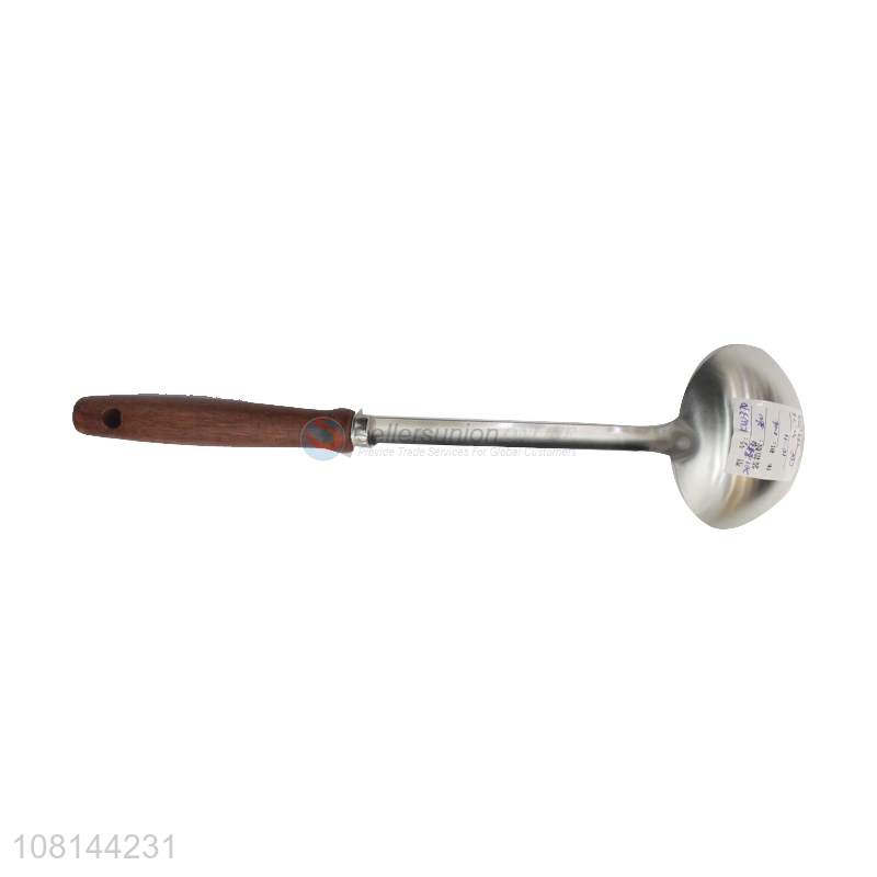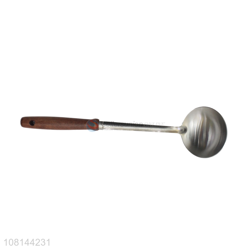 High quality silver soup spoon wooden handle hotpot spoon
