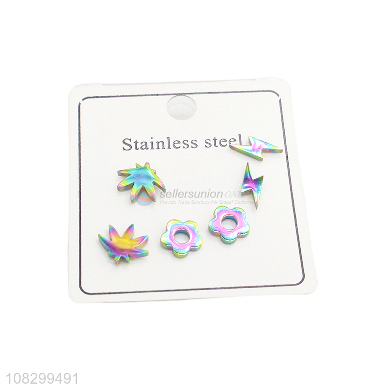 Fashion Colorful Earrings Stainless Steel Ear Stud Set