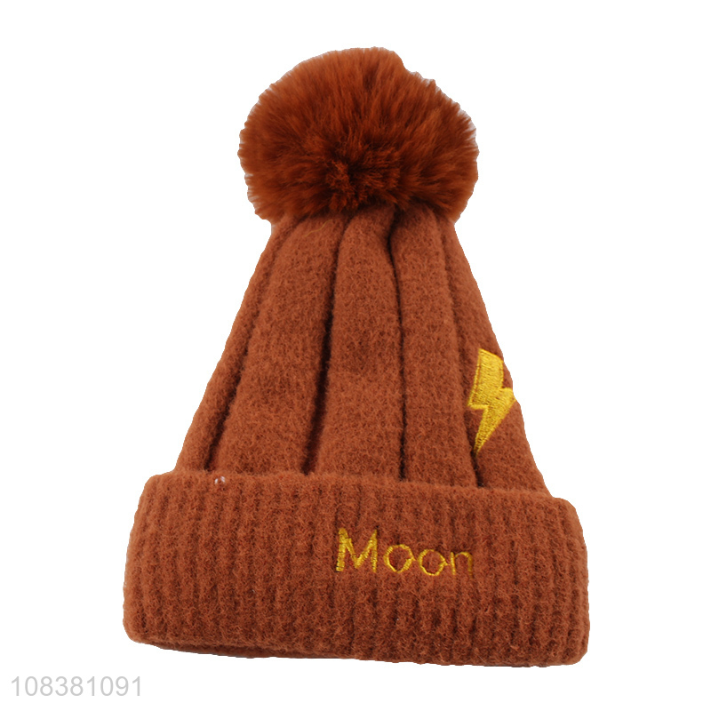 Custom Soft Fur Ball Winter Knitted Hat Fashion Beanie