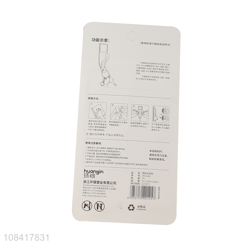 Factory direct sale white double hooks home wall sticky hooks