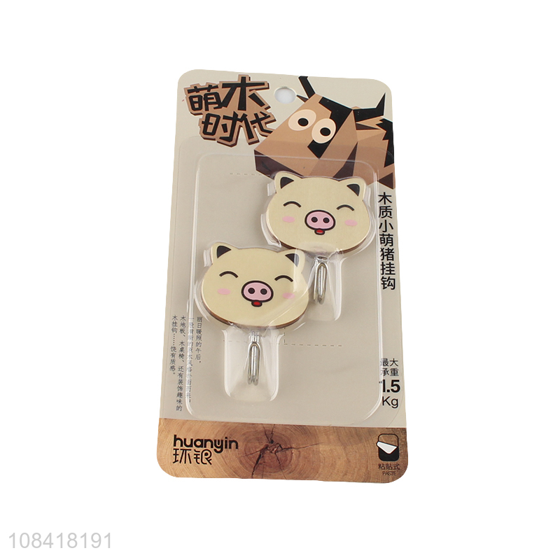 Best selling cartoon pig wooden storage hooks sticky hooks