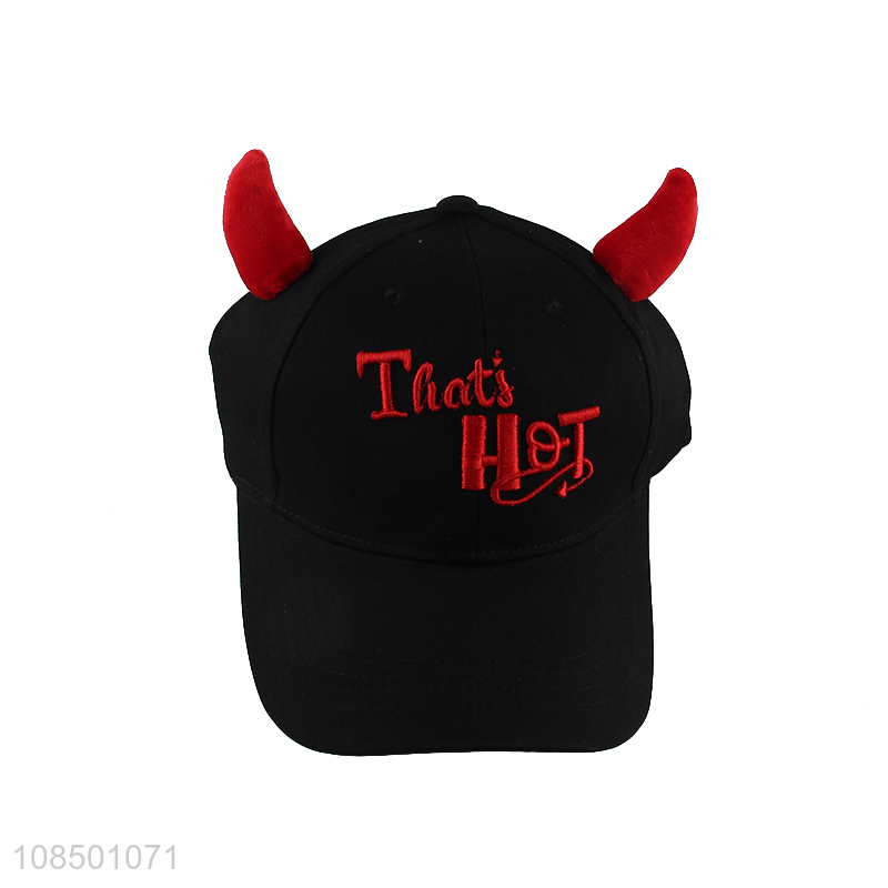Recent design unisex trendy embroidered baseball cap with ox horn
