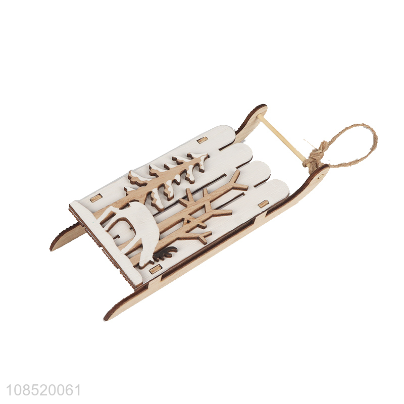 Wholesale handmade wooden sleigh ornament for Christmas tree decor