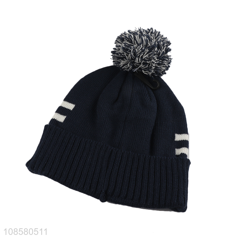 Hot sale unisex jacquard knitted beanie hat with pompom