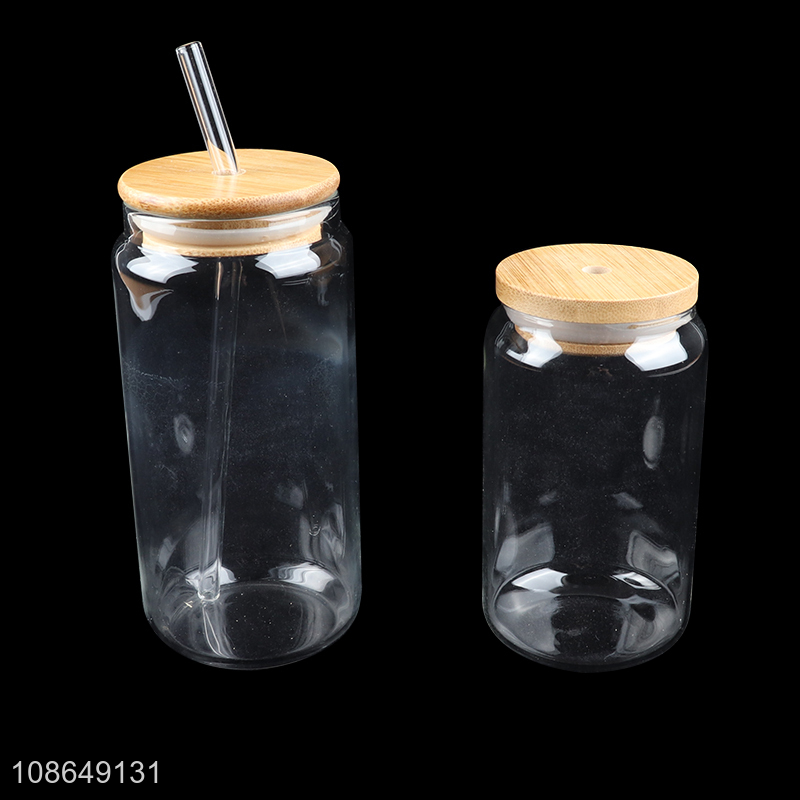 Online wholesale high borosilicate glass drinking cup with bamboo lid & straw