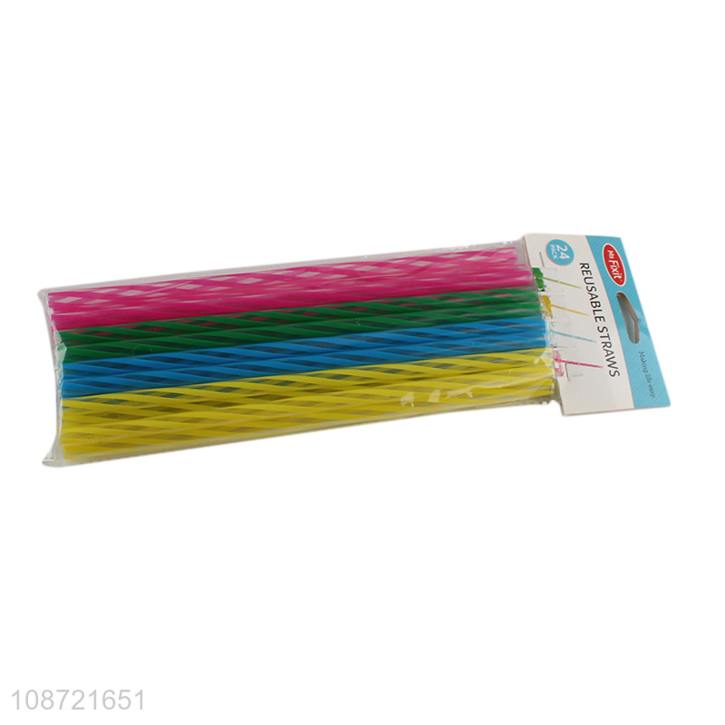 Wholesale rainbow color striped straws reusable hard plastic drinking straws