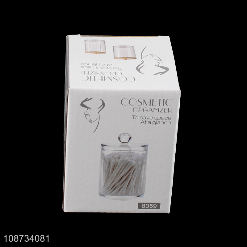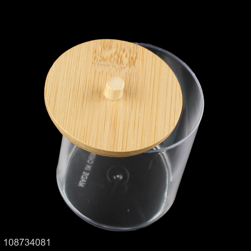 Factory price round bamboo lid cotton swab storage box for sale