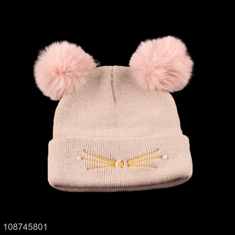 Hot selling winter beanie hat pompom beanie cap for women girls