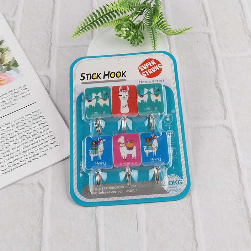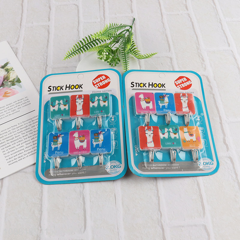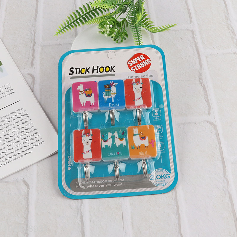 Factory price 6pcs cartoon printed wall hooks custom sticky hooks