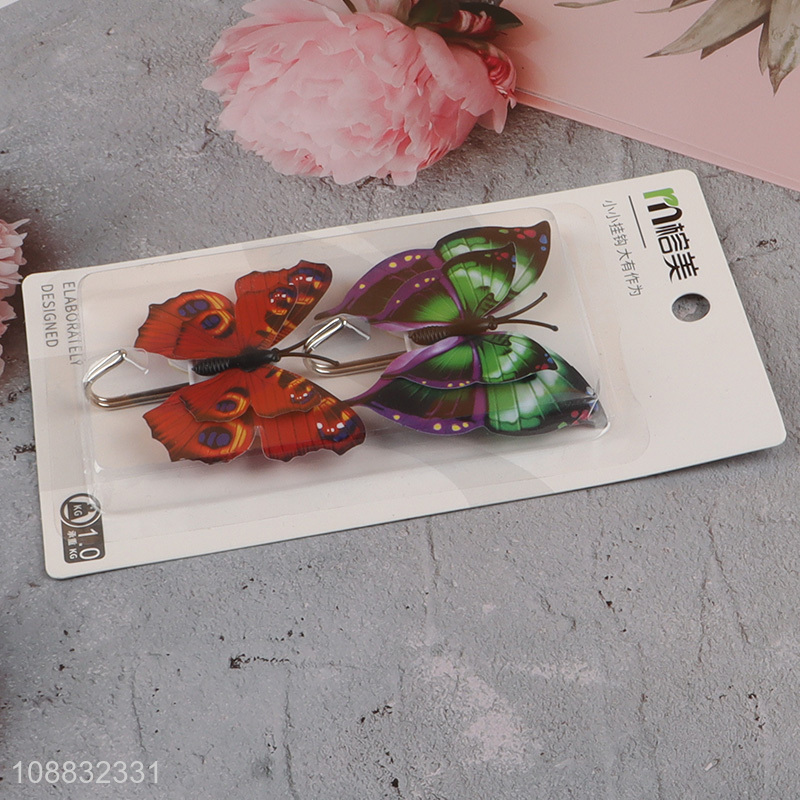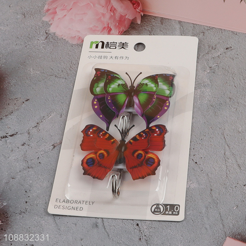 Good quality 2pcs butterfly shaped sticky wall hooks for hanging