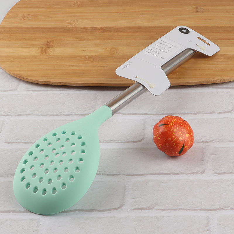 Factory price non-stick silicone slotted ladle with stainless steel handle