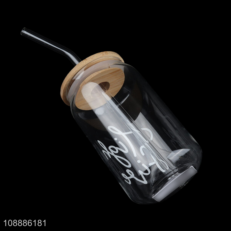 Yiwu market home office glass water cup drinking cup with straw