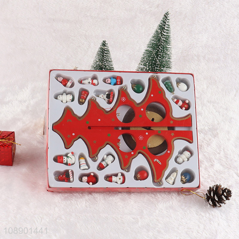 Promotional Wooden Christmas Tree with 20 Mini Ornaments for Home Decor