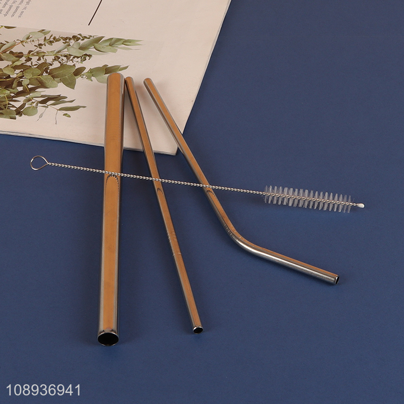 Wholesale 3+1 Colored Metal Bent and Straight Straws with Cleaning Brush