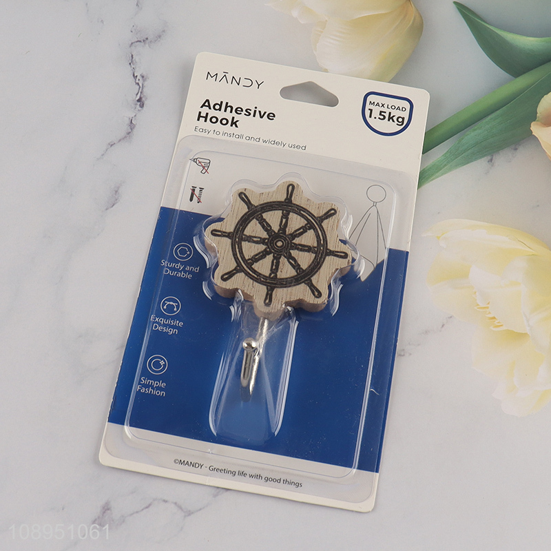 Online Wholesale 1PC Rudder Shape Wooden Hook Wood Sticky Hooks