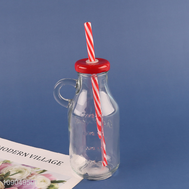 Factory price empty glass milk bottle juice cup with straw